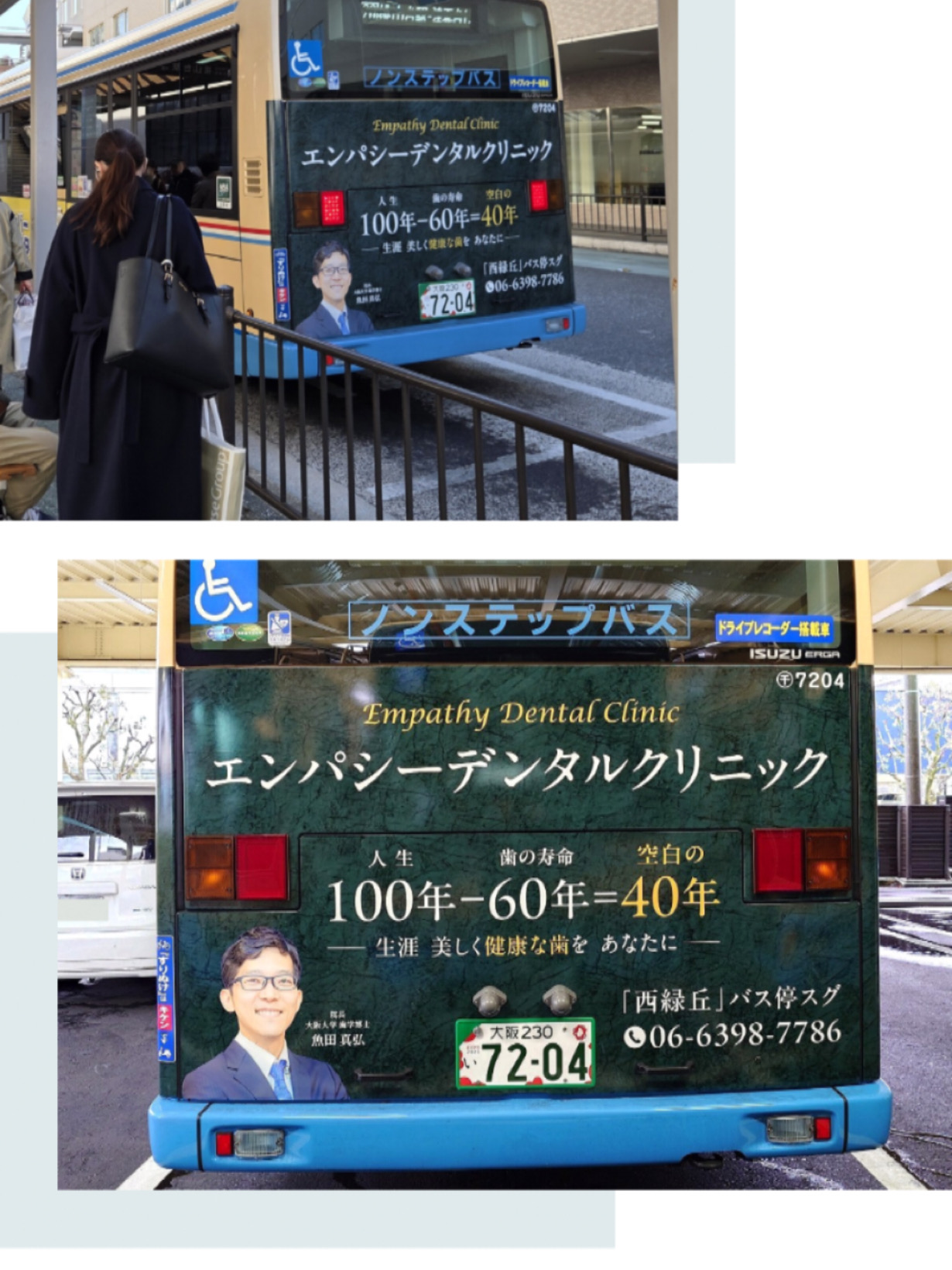院長の写真入りの阪急バスが走ります!